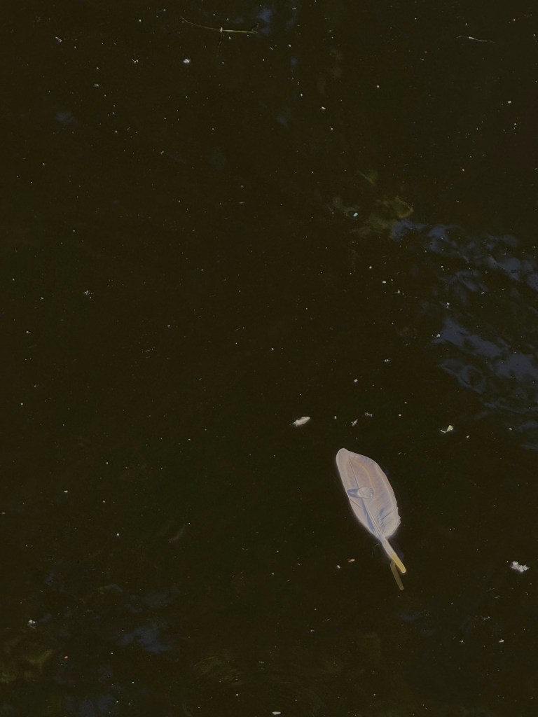 Two hours later I was sitting next to water, deeply engaged in conversation with an inspiring creature. In the middle of this, a feather floated by with a single drop of water on it, able to maintain its form because of the feathers soft touch.