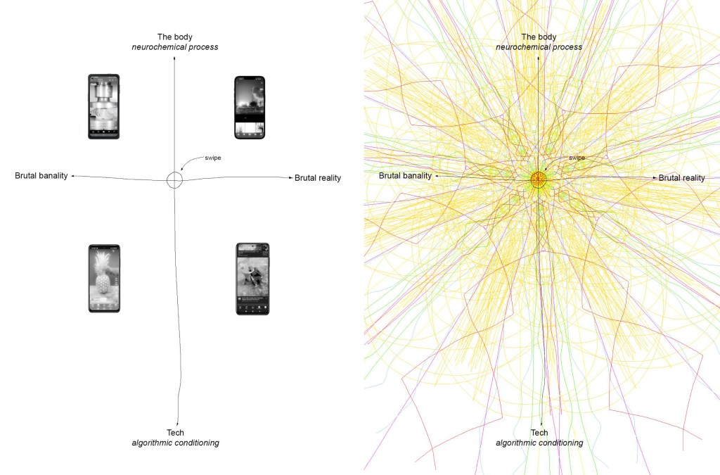 It is abundantly clear that the form of our western general preoccupation with the brutality of reality (or lack thereof) stems from the way we encounter it on our devices. In many ways it is strategically deployed in the ongoing attempt to fuse us more intrinsically to these very devices. That it appears to us the way it does is a testament to the tailor-made implosion of the barriers between our bodies’ electro-chemical processes and those of the algorithms (and tech) we live with.