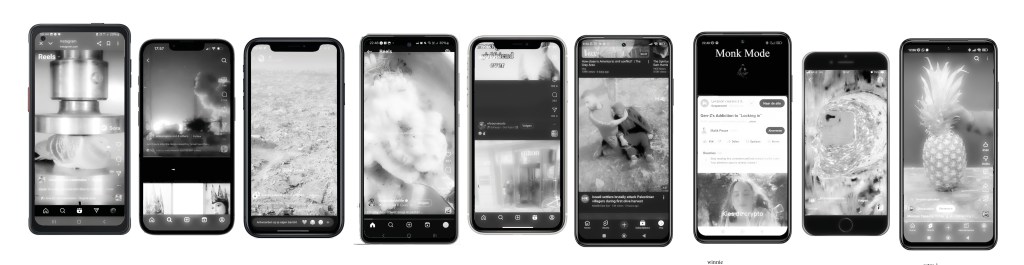 As I remember, a participating artist answering a visitor, I join mid-conversation; ‘‘although as a daily passerby of rough and tragic scenes while walking home at night in my beloved metropolitan city. I can’t help but notice how these encounters pale in comparison to the pixelated, infinitely refreshed devastation waiting for me when I slump into the sofa, phone in hand. The brutality squared, cubed, optimized for engagement. And through the same feed ! I do think I also encounter what we need to see. The news that doesn’t make it to the news. The footage that speaks when institutions don’t. Activist voices, unfiltered tragedies. So how do we navigate that? Staying clear and grounded. How to metabolize what’s necessary without becoming addicted to the spectacle of necessity? is there another path, or do we just give up and let the feed eat us… whole.’