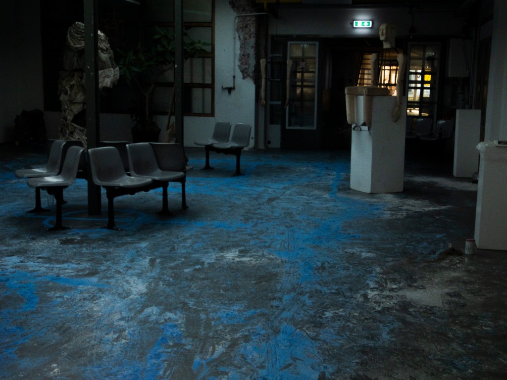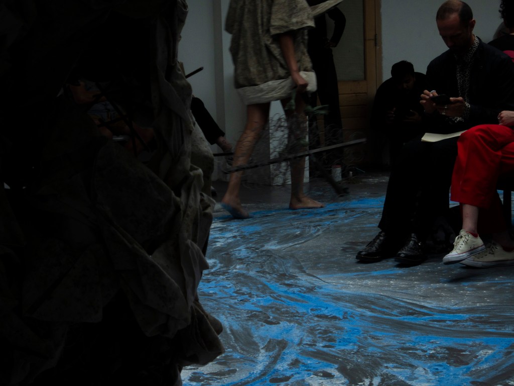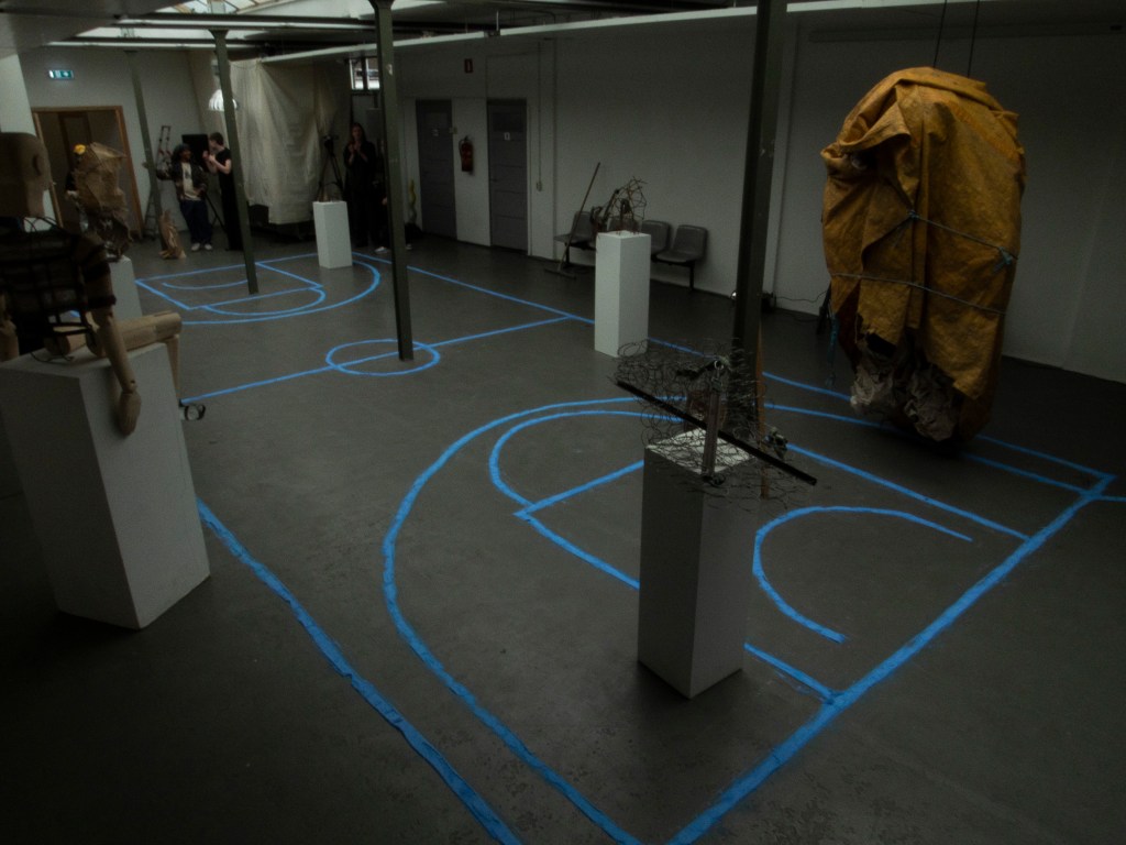 A giant sports field (basketball) made out of pigmented flour. On this field several things were shown, a fashion collection of Dille Ach, a performance by me, and the collection of Mark van Hoek. images are shown in chronological order, click on them if you want to see more.