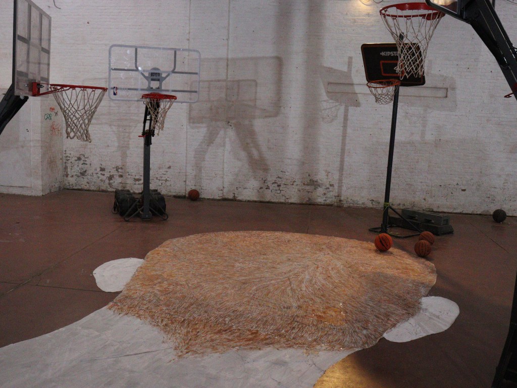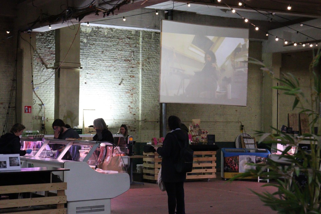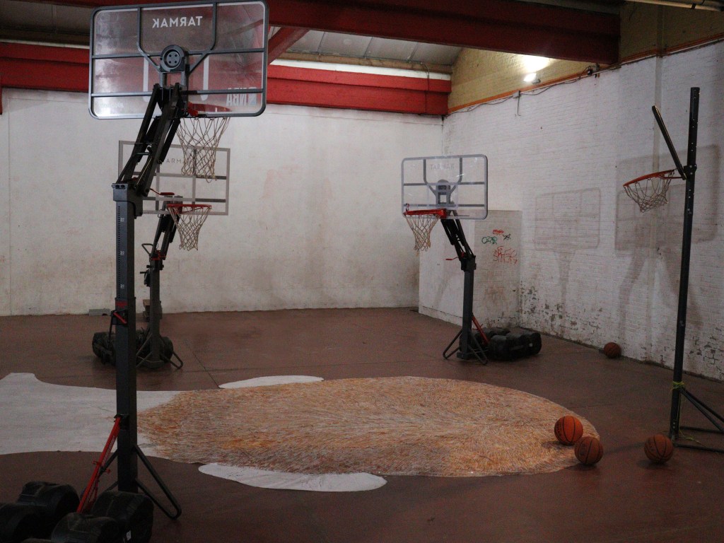 Santo is a community center for recreation, sports and a weekly market in Gentbrugge. For the exhibition there I worked together with several people. The large video was a documentation of an attempted collaboration with Naïs blommaert, an artist friend, We decided to show this while the weekly market took place.